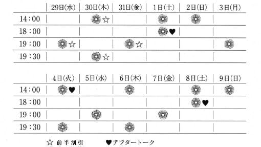 舞台監督:村信 保(劇団キンダースペース)・新井笙太/舞台美術:吉野章弘